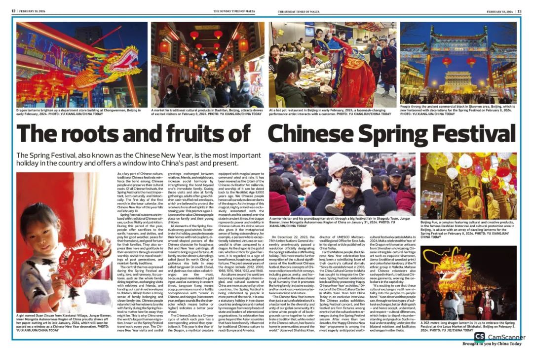 China Today’s Report on Spring Festival Resonates with Maltese Readers Maltaccc | February 20, 2024 On February 18, 2024, The Sunday Times of Malta published China Today’s report "The roots and fruits...