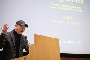 随后嘉宾们跟随策展人兴致勃勃地观看中国馆的作品,被一件件精美又富有中国意象和气质的作品所吸引,赞叹声不绝于耳。